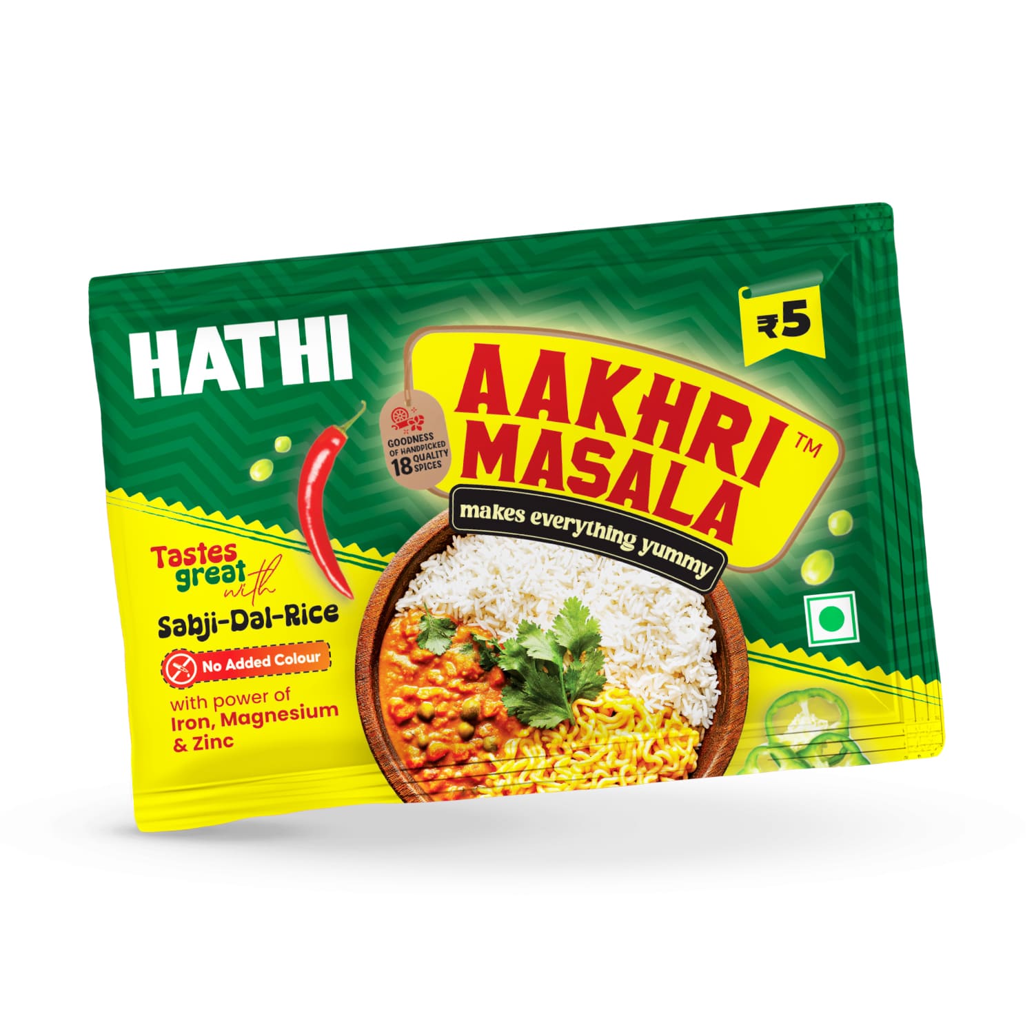 Hathi Aakhri Masala is a tasty all-in-one seasoning that adds instant flavour to any dish. This Aakhri Masala is made from selected spices like garlic, coriander, onion, cumin, turmeric, chilli, black pepper, and many other spices. Using all these ingredients, we carefully made Aakhri Masala to give you a strong smell and a chatpata taste to every dish.; We never add any artificial colour and chemicals, it's healthy and gives a natural taste. Just a small amount can turn simple food into something very tasty. It is perfect for daily meals, snacks, and quick recipes at home.