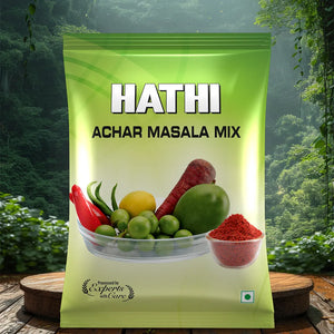 Hathi Achar Masala Mix brings the authentic and tangy flavors of traditional Indian pickles. This tempting achar masala mix spice is ideal for making a variety of pickles, enhancing their flavor and aroma, and giving a tangy and spicy kick to your achar. Whether you're preserving veggies and fruits or adding zest to your several achars, Hathi Achar Masala Mix assures that your culinary achar recipes are flavorful and traditional.