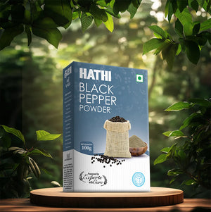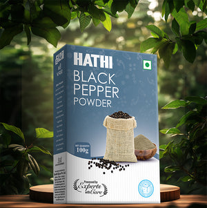 Hathi Black Pepper Powder is made with the finest black peppercorns picked up from the highest farms known for producing high-quality crops. The peppercorns are meticulously chosen, sun-dried, and processed to perfection to preserve the powder's rich aroma, pungency, and robust flavor.