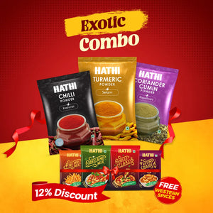 Experience the best spices in one amazing combo – the Hathi Chili Turmeric Cumin Combo Exotic. Carefully selected to enhance your cooking, this combo includes: