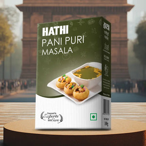 Our Hathi Pani Puri masala gives an authentic taste of street food. This spice blend is ideal for adding a zesty flavor to your pani puri. Hathi Pani Puri Masala is a combination of authentic spice elements collected only from the finest farms. Experience the real taste of blended spices in your pani puri dish.