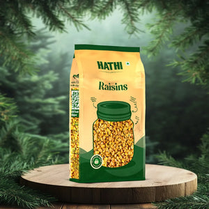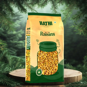 DescriptionPurposeHathi Raisins are a tasty and nutritious enhancement to your regular diet, providing the ideal combination of natural sweetness and necessary nutrients. These raisins, made from sun-dried grapes, have all of the freshness of fresh fruit squeezed into small, chewy bites. Hathi Raisins bring a touch of natural sweetness to your meals while nourishing your body with essential vitamins and minerals. Top 3 Benefits of Choosing Hathi Masala Raisins for Your Health100% NaturalWe believe in keeping things pure and natural. Our raisins are sun-dried without the use of any artificial preservatives or chemicals, giving you to take in the flavour and health benefits of this superfood. Each batch is carefully treated to retain the raisins' inherent nutrients, resulting in a nutritious snack for all ages. Premium qualityHathi Raisins come from the greatest agricultural land, where only the best grapes are chosen for drying. We ensure that each sultana is plump, juicy, and free of chemicals. Our quality control techniques ensure that you receive a premium product that is unique in taste, texture, and freshness. Yummy and freshHathi Raisins are bursting with freshness that you can taste in every bite. Their naturally sweet and somewhat acidic flavour makes them a delicious snack that fulfills your sweet taste while still being nutritious. These raisins provide a fresh burst of flavour to every meal, whether in desserts, breakfast cereals, or savoury dishes.